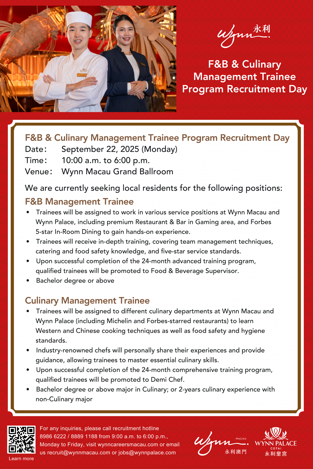 Wynn F&B & Culinary Management Trainee Program Recruitment Day