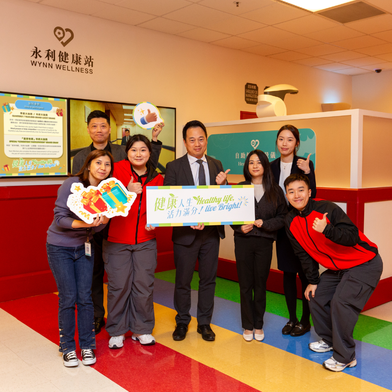 永利鼓勵團隊成員培養均衡飲食和注重運動的生活方式,並在工餘時間善用永利健康站的全天候自助健康檢測儀,掌握身體的狀況,為健康生活加油。